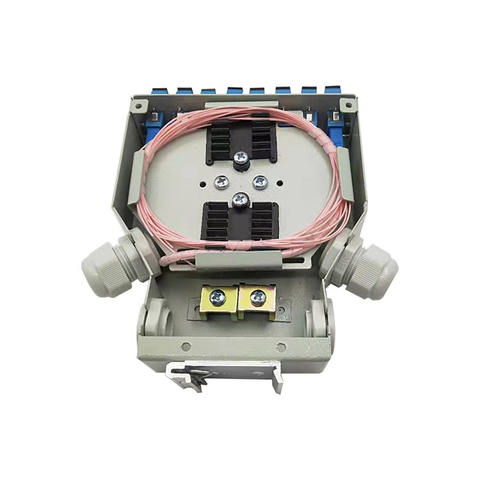 Metal Case Din Rail Mounted 12 Core Fiber Optic Termination Box with Plastic Splice Tray